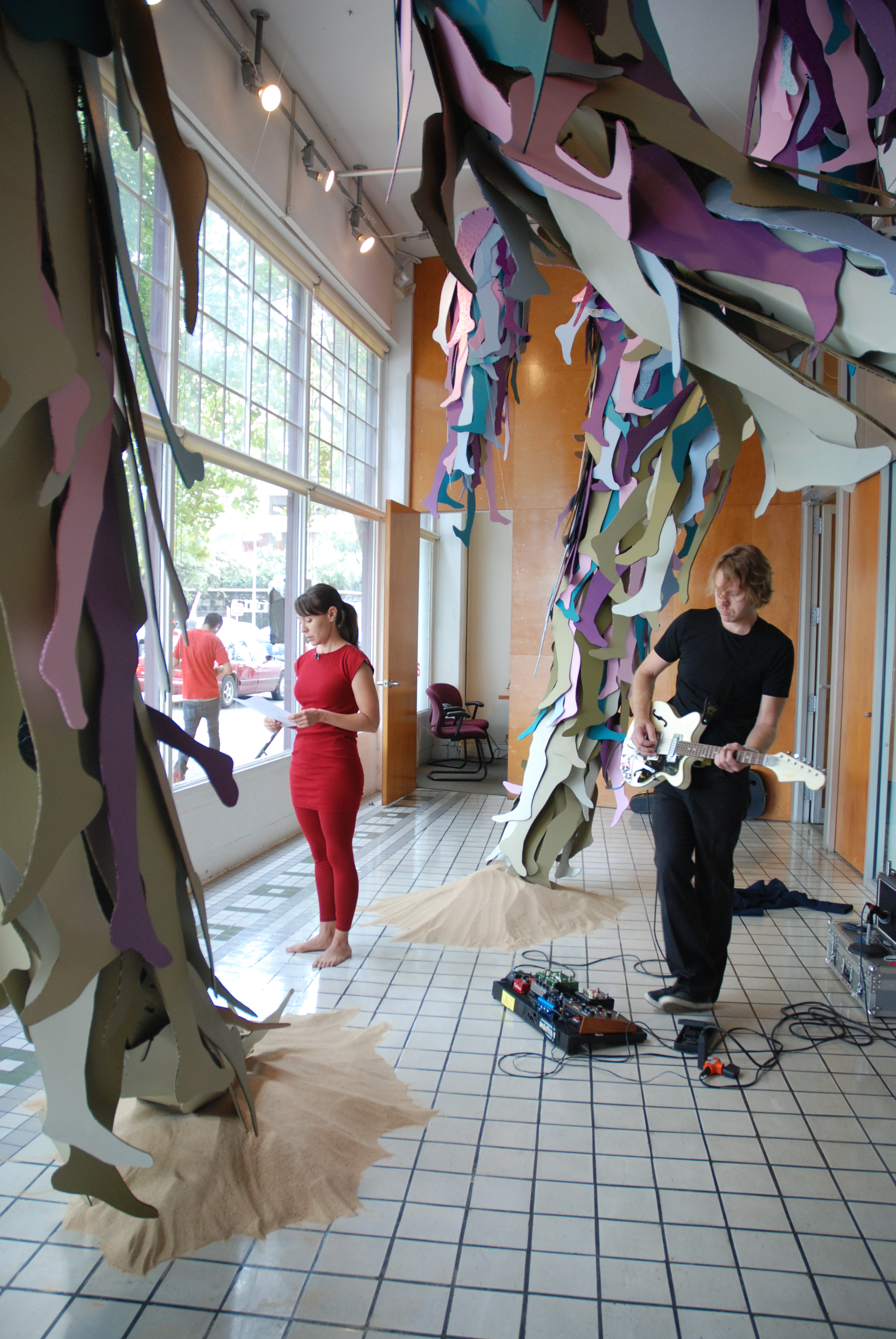 Buried, Not Dead (2013) was a live performance and installation inspired by the true story of one man’s intimate experience with the sole survivor of a doomed ant farm. As he witnesses her strange journey and subsequent death, he examines mortality, loneliness, and our connection to life beyond the human realm. The artist performed this story accompanied by an original electric soundscape by Erik Sanden. Spectators watched the two performers through windows from the street, with the narrative amplified by sidewalk speakers. An audio recording of the story was played on location at Artpace for the duration of the exhibition and is available on the album Live Ballast.
