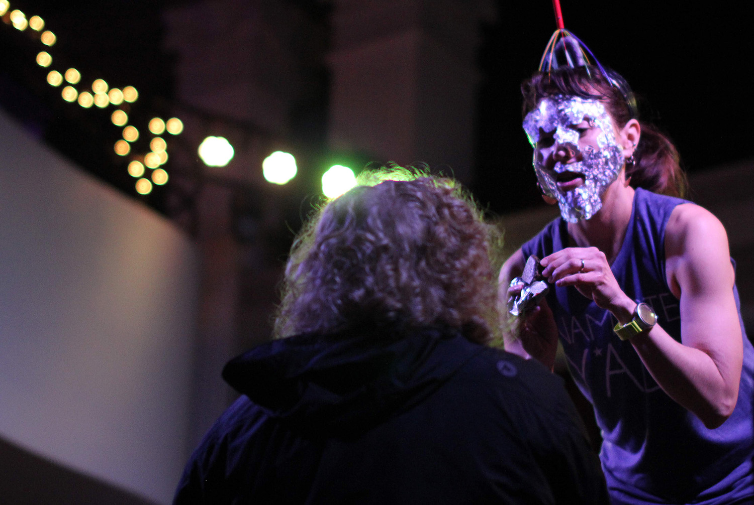 I talk about Levinas, the absence of touch, and the memory of sharing breath with a stranger. I shatter distance by playing a nose flute face to face with an audience member (who was not a stranger). The piece ends with me singing “Por Eso Me Quedo” by Lhasa de Sela and Yves Desrosiers, a song of tender longing laid bare.
