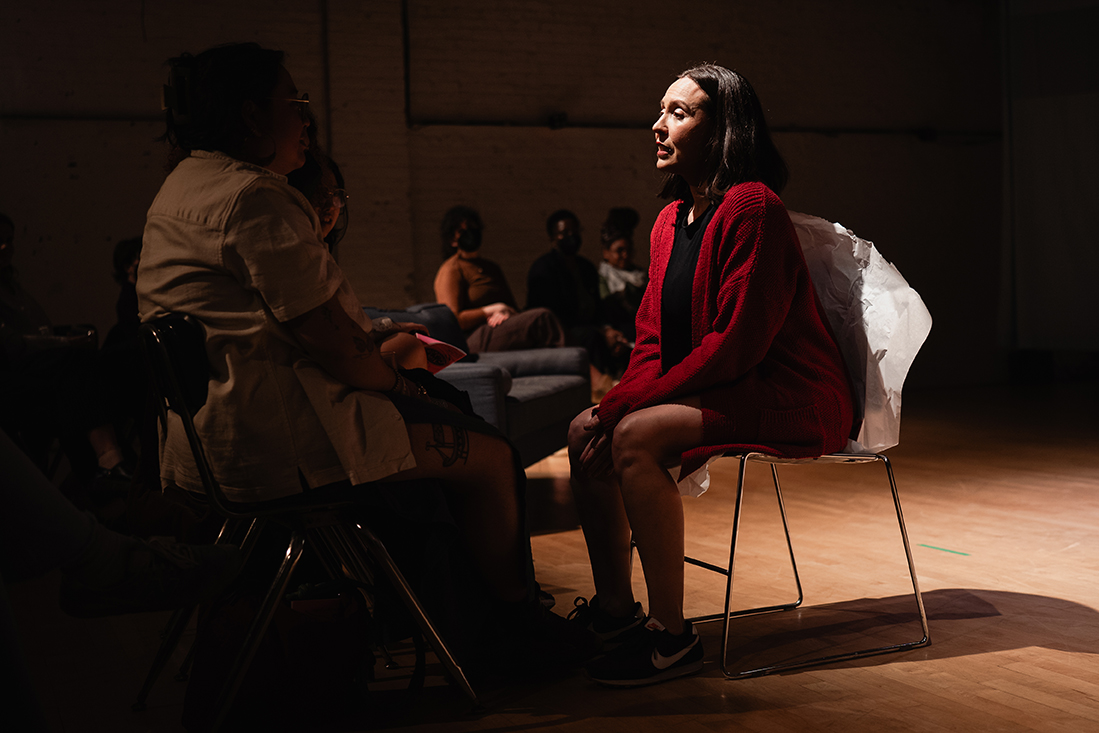 Treat Yourself (2019) is a 25-minute performance highlighting the commodification of self-care and the colonial tendencies of the wellness industry, using movement, recorded sound, stream of consciousness writing, and a communion of sorts with the audience. Treat Yourself was featured in the 2019 Experimental Action International Performance Art Festival.