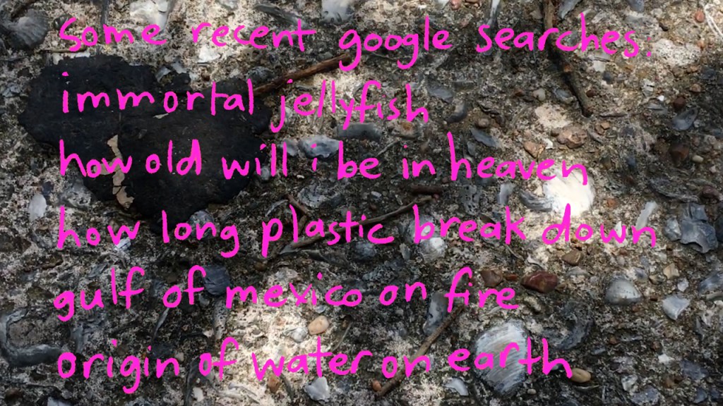 Would You Look at the Time is a research and video art project that explores the relationship between ideas about time, biological and geological timescales, and human interactions with the non-human world. The project includes the videos Timing (2022) and Shell Composite (2022) as well as a research bibliography and artist discussion panel. The panel consisted of multidisciplinary artists Julia Barbosa Landois, Julie DeVries, and Monica Villarreal, and was moderated by Tiffany Jin, curator/co-founder of the Houston Climate Justice Museum. Read the transcript here.